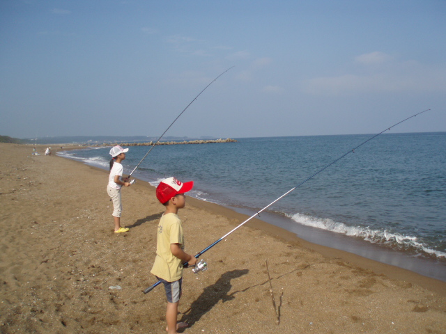 子供達の夏休みの思い出に、波松海岸へ投げ釣りに行ってきました。