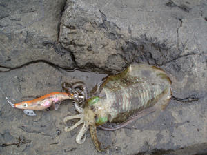 エギをキャストし流れに乗せ、ドリフトシャクリ。