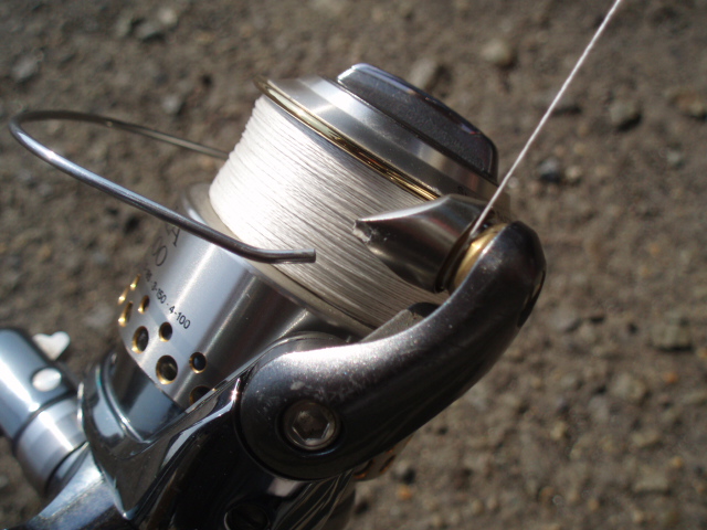 ここまで無残に飛ばされたのは初めてです。むっちゃくやしいです。気をり直しえち鉄上流左岸へ移動。人いっぱいでした。橋下近くでキャストする。数投目、ペチッと音がした。ありゃ~ベールが折れてる