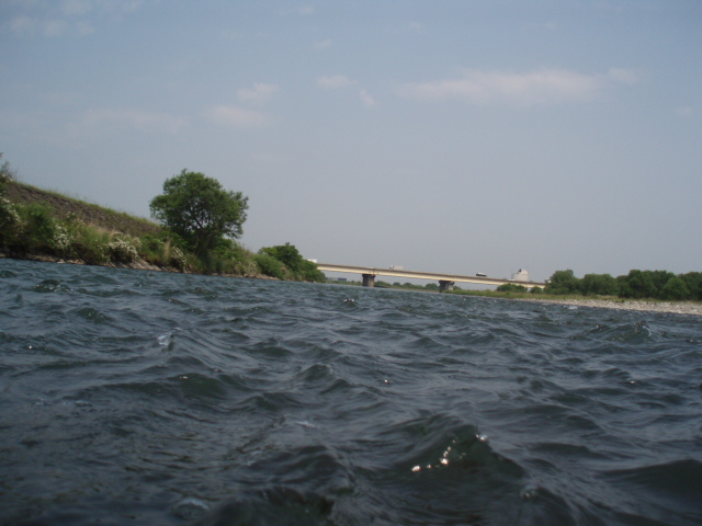 福松大橋下流左岸へここで対岸の人がなにかをヒットさせた!