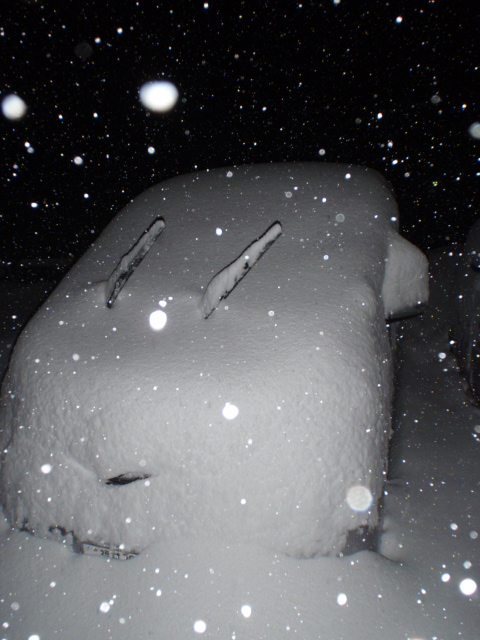 車の雪降ろしに1時間半かかり夜も明けた(かなり腰に・・)