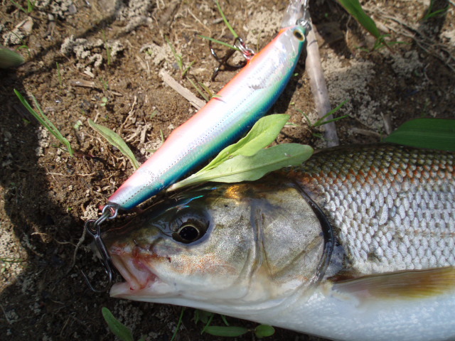 ウグイでした。水道局前へ移動水深があるのでディープで攻め途中からMDにチェンジし下ったが反応なしでした。なかなか釣れませんね 魚はいると思うのですがルアーに反応が悪いです。明日の雨が起爆剤となってくれればよいのですがね。あと2,3回行けるかな。