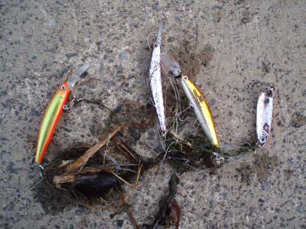 水色は、ささ濁り雪白が入った感じの水色。まずはノースクラフトDCM越前スペシャルアピール系で狙う。流れに乗せトゥイッチをかけながら誘う。ミノーでも狙いましたが反応なし。よりディープを狙うため、スプーンにチェンジ。1投目から根掛かりだ!ん!じわ~と動く。なんだ?ゴミ?ロッドに負担がかかるので、直線に引っ張ってみた。ずぼっ!と抜けた。ああ~良かったと回収するとなにやらきらきら光るものがついている。うわぁ