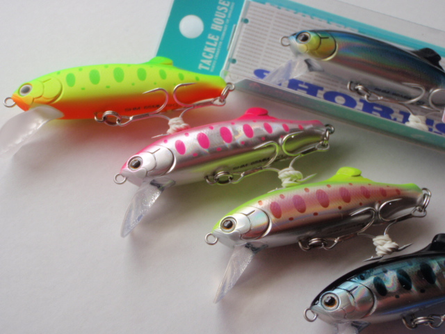 シーバスを狙っているときにあの飛びと、沈下速度の早さ、ブリブリアクションが流れのある川でも通用するのではないかと、使ってみたいと話をしたところ、なんとトラウト用にカラーリングされたものがありますよとなんかタイミング良いことがあるものだと。