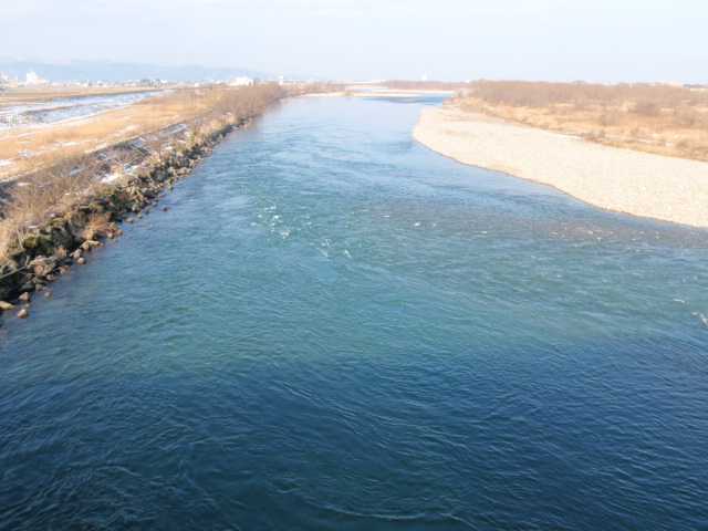 ぶっつけ部からは川幅は狭く下流へ行くほど広くなっています。