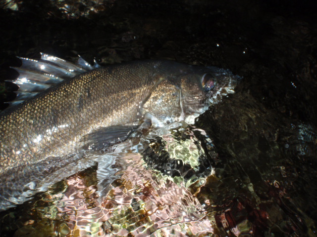 再度キャストを繰り返すとコン!ヒット!こいつもまた引きが強いしエラ荒いが図太い!いいサイズと確信、やり取りを楽しみランディング!