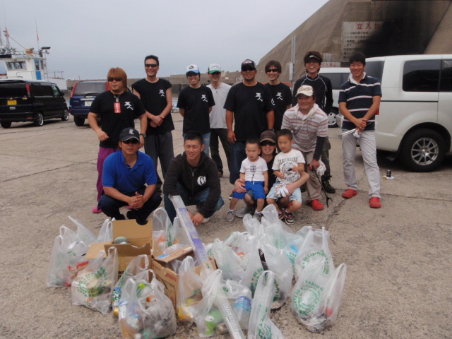 エギングチーム墨人の方と一緒に1時間清掃をしゴミもたくさん集まりました。