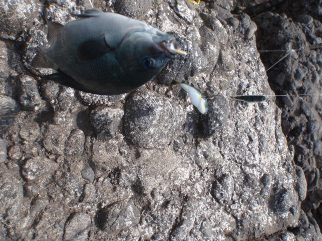 昼間でもアジの釣れる磯へと向かったのですが、釣れるのはこいつだけ
