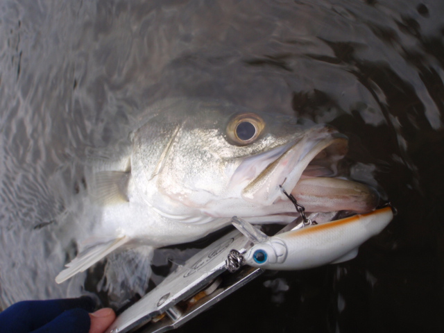 数年前ならこういう場所で出るシーバスはでかいのですが、ここ数年シーバスのサイズは下がりましたね。