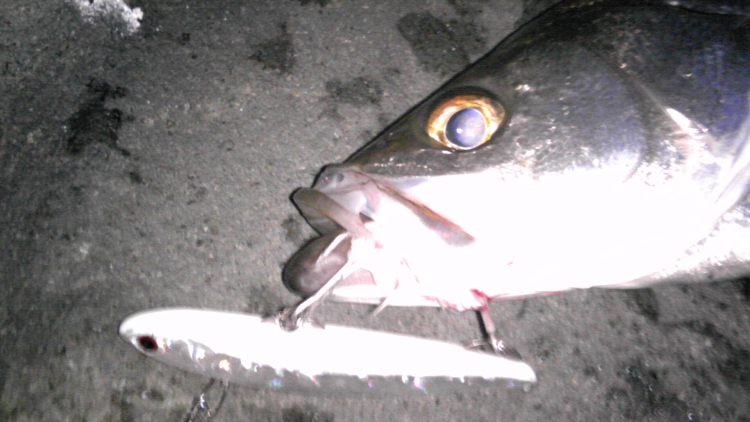 めっちゃ細いシーバス。サイズは65cmほどでしたが細すぎ!