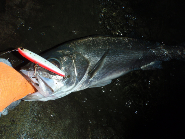 数投目、コツと当たり!ヒット!50cmシーバス。