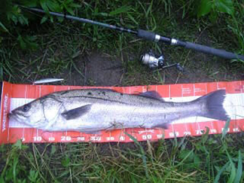 細いが長さがある。ダウンロード(bmp) 6月1日からお世話になっているやすやさんのシーバスダービー始まったばかりなんで幸先がいい。しかも今年初のシーバスはランカーサイズ!ダウンロード(bmp)83cm。 しかしこないだデジカメを潰してしまい修理中。携帯で撮ることにぶつ持ちは無理。この後移動したりするが反応なし雨も時折きつく降ってきたのでやめました。さてパソコンに画像をどうやって取り込めばいいのだろうかケーブルなどついていないし自分のパソコンにメールし画像修正わけわからん