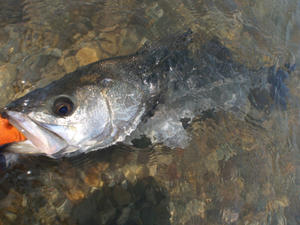 きれいなシーバスにみとれている暇はない撮影をすましリリース。