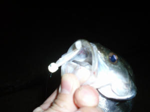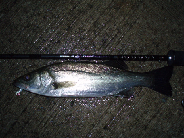 ■■■ 12月6日 AM5:00 朝の寒さが身にしみる毎日ですね。寒気の影響で海も時化て磯シーバス真っ盛りです。夜勤も早く終わり波が落ちる予報だが越前海岸へ向かう。途中漁港によりメバルを狙ってみました。先日、明かりの照った海面をのぞき込んだら、80cmはありそなシーバスが悠然と泳いでいた。私の姿を見てかなにをキャストしても反応はなかった。今日はのぞき込まないで狙ってみる。あえてメバルタックルで挑んだ。2投目ググ!ジィー来た!それ以上引きはなく、なんなくキャッチ。セイゴでした。