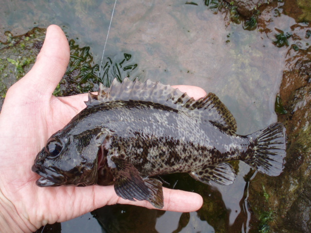 フックはバーブレスにしておくと魚にダメージを与えずスムーズにリリースができる。1時間ほどで15匹は釣れたかなぽんぽん釣れるんで数えてないけどこんなもんですわ。いい岩だと2.3匹釣れることもあります。