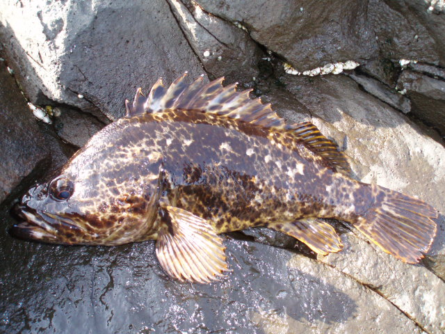 なわけありません。三陸海岸でよく釣れるベッコウゾイでした。ルアーがっぷり食ってます。