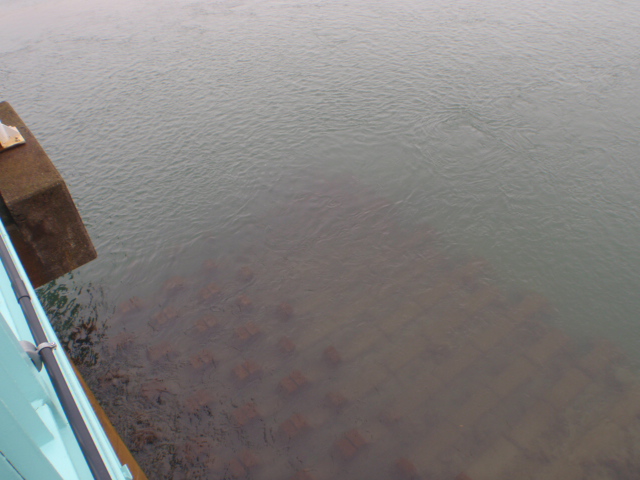 取水口前や船着き場前の地形変化は健在なのか濁りで全く見えません。