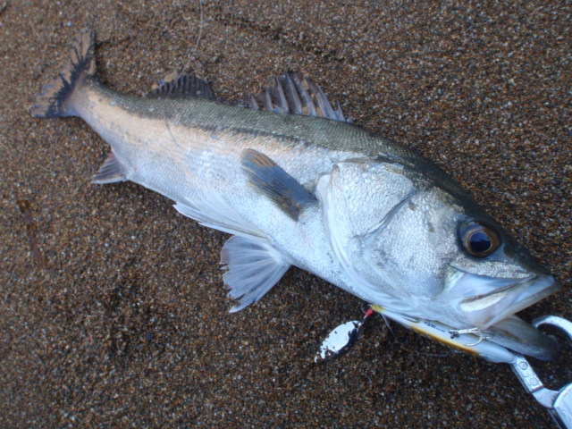 ギュンギュンと強い引きに青物?かと思ったのですがエラ荒いをしたのでシーバスだ!