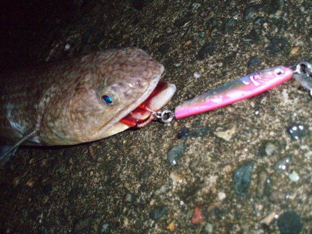 ゴン!ヒット!バシャと跳ねたのでシーバスだろうと思っていた。