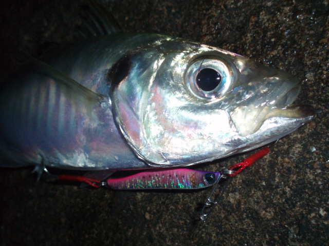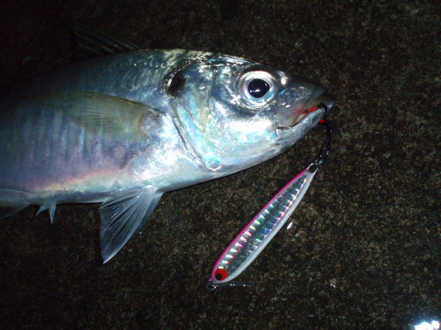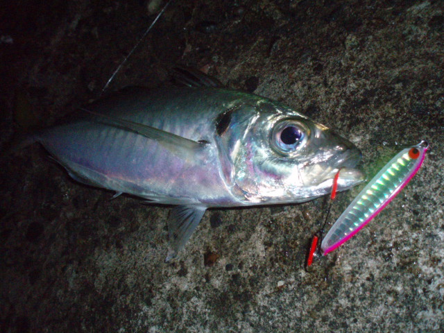 しかし足元に来た魚体はシーバスでなくアジやー!!しかもでかい!!