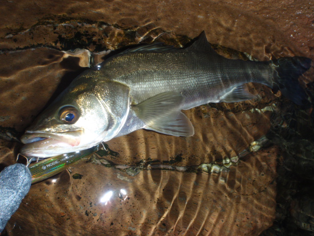 昨日の朝は磯で45cmのシーバスを何とか1本キャッチできた。