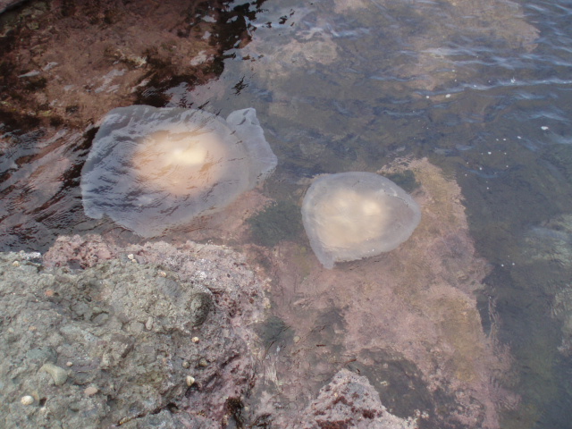 いい型胴長16cmその後もポツポツ乗せた。移動し少し深めのポイントエギの後ろに3バイついて来た。今日は風も波もないので、久々のサイトかなり警戒していたが3バイ乗せた。転々と移動しながらサイトを楽しんだ。今日は14ハイキャッチ。磯際には、名物のこいつがいました。