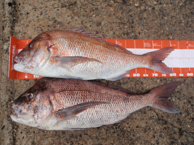 初めて釣れたマダイがなんと2枚!しかも80UPとは自分でも出来すぎで驚きです。