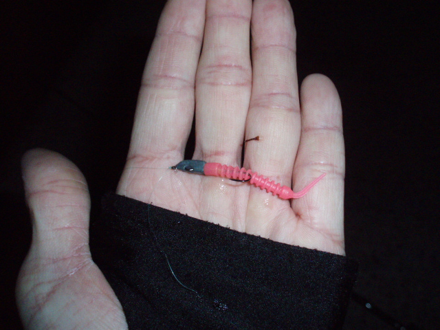 反応がないので、1.3gのジグヘッドに大阪で買ってきたワーム