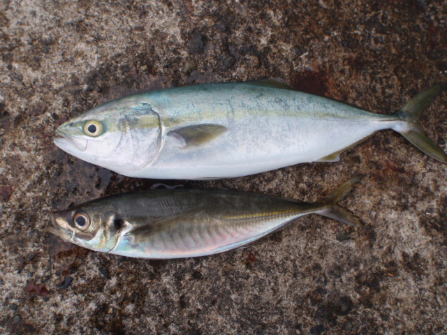 そろそろ帰り時間が迫ってきたので、細井さんの様子を見に行くと、アジ&ハマチキャッチしていました。