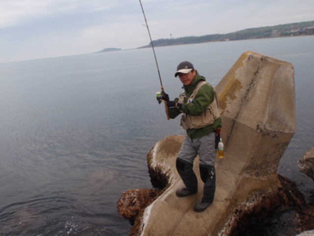 ゴンゴンと走り回りテトラに絡んでしまったが、なんとかキャッチ!