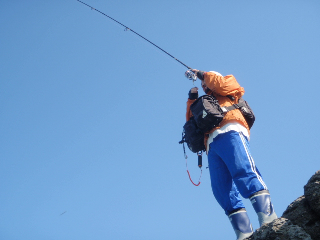 フォローの風をいかしぶっ飛びルアーがさらにぶっ飛び広範囲に狙うことができる。
