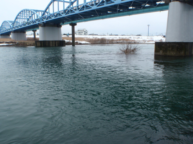 水門前は浅くて釣りになりません。