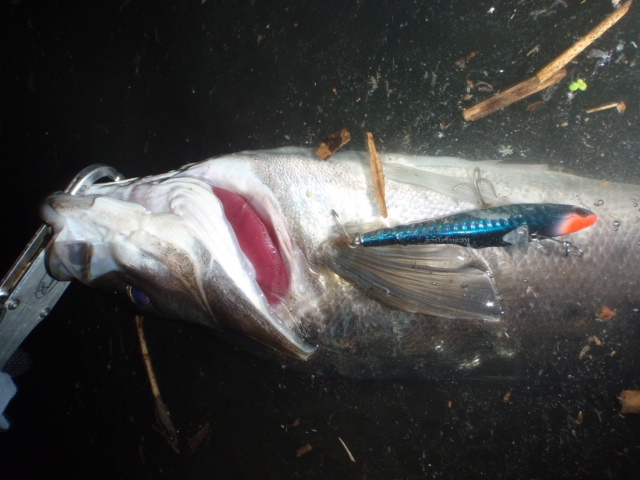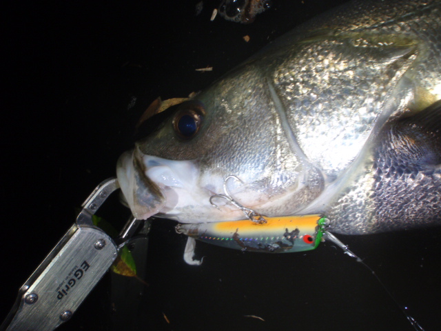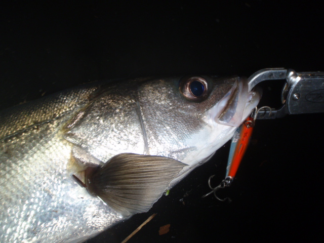水面まで上がってきたシーバスはやはりスレでした。