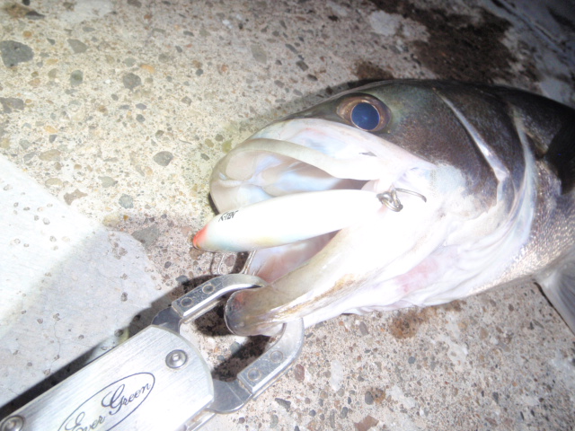 少し波が落ち着き狙いやすくなって足元までルアーが引けるようになっていた。
