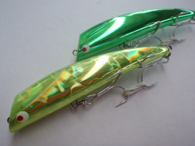 クロームグリーン濁りの中のみならずデイでの釣りで、フラッシング効果があるように思います。
