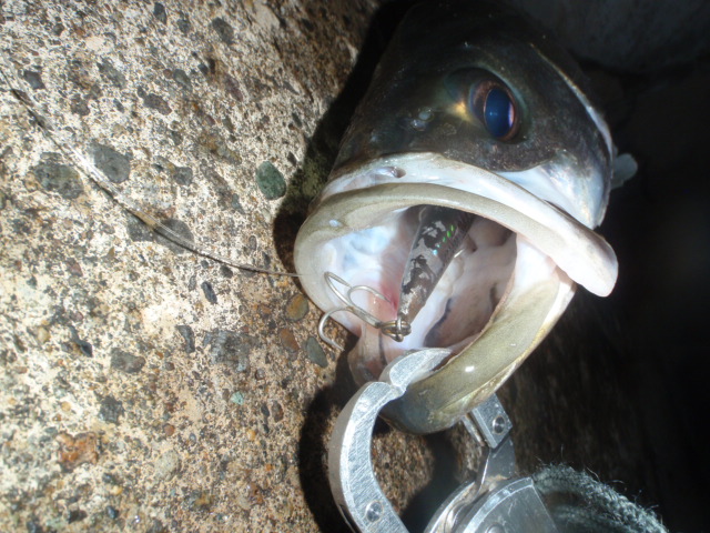 濁りがあるので足元まできっちりリトリーブ、時にダートを入れながら狙うと足元でシーバスがバイトしてきた!