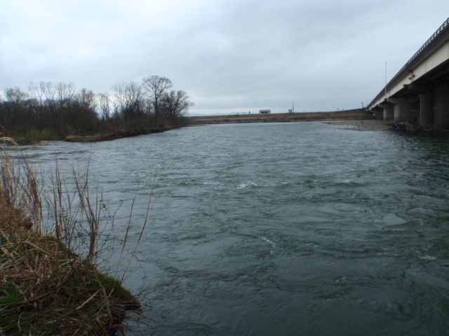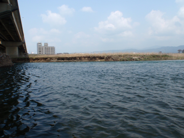 1m近くになったら行こうと思っていた福井大橋上流左岸中州へと向かったのだが先行者ありのため水道局前に移動。