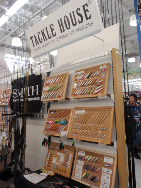 まずはお世話になっているタックルハウスブースへと向かったんですが、ポンと腕を叩かれふと見るとコアマンスタッフ、大阪にいた時からの釣友の平中君でした。