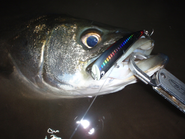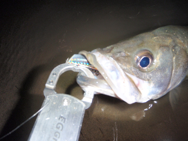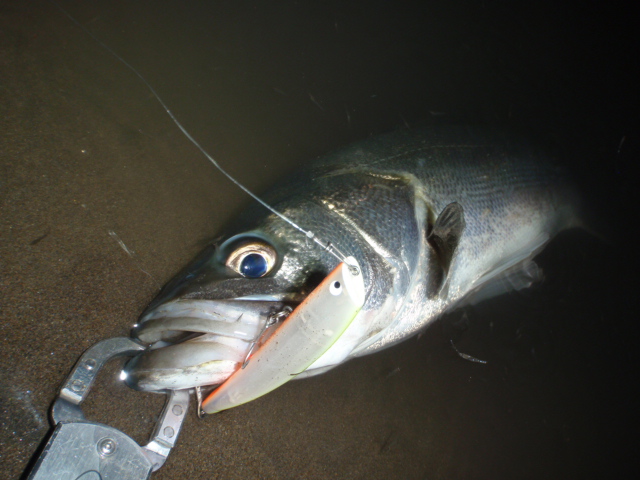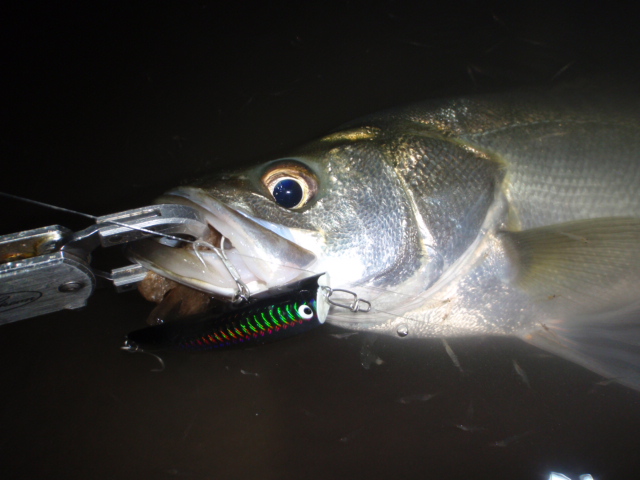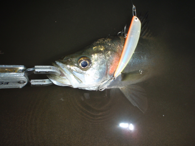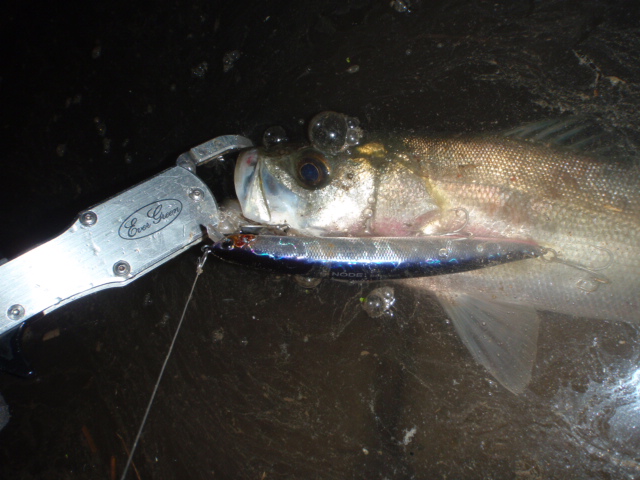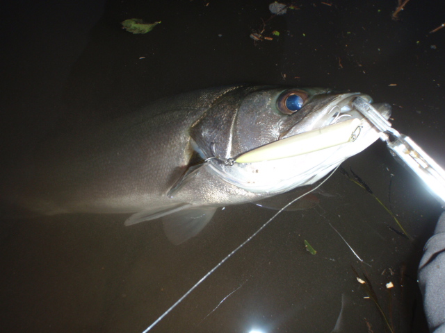 リトリーブはゆっくり、コン!ヒット!今日のシーバスは良く暴れる