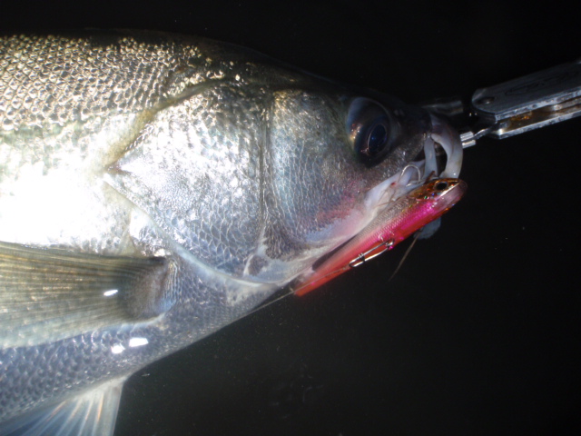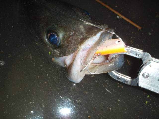 コン!ヒット!絞り出されるドラグ!来たかランカー!と思ったんですが元気いっぱいのシーバスというだけでした。