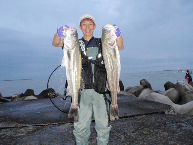 その日の夕方にお二人さんはリバーでシーバスキャッチしてました。