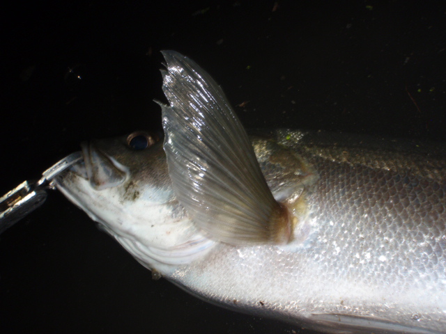 はぁーいと(笑)胸ヒレの大きなシーバスでした。