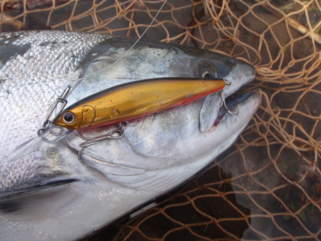 もうそろそろサツキマスも遡上してくるので、ルアーは小さめのバフェットミュート60(ゴールドオレンジ)
