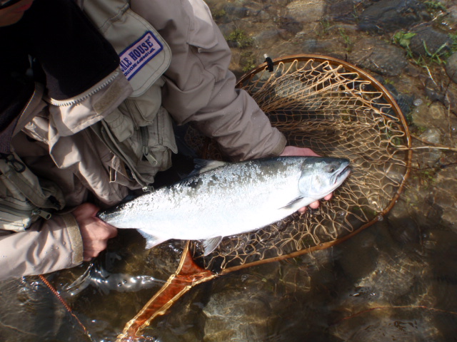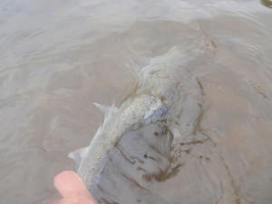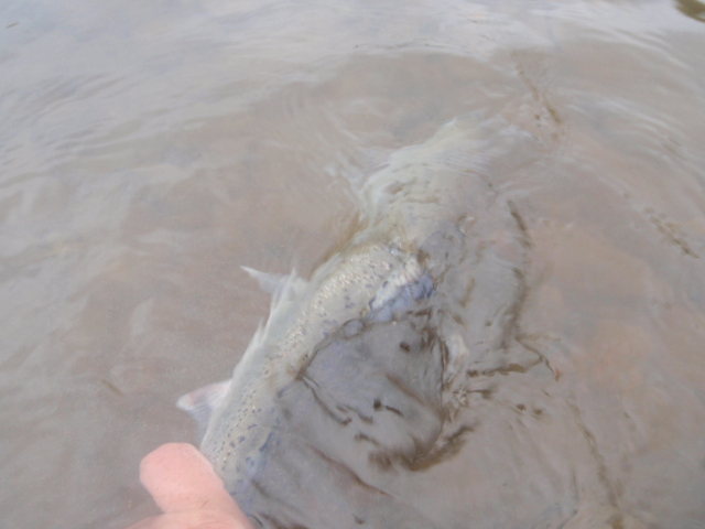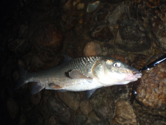 シャローエリアはこいつたちがたくさんいるようなので、流速のある方へキャストする。