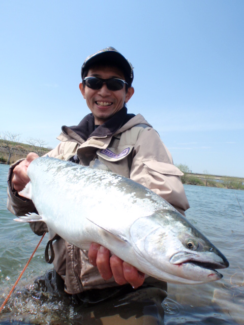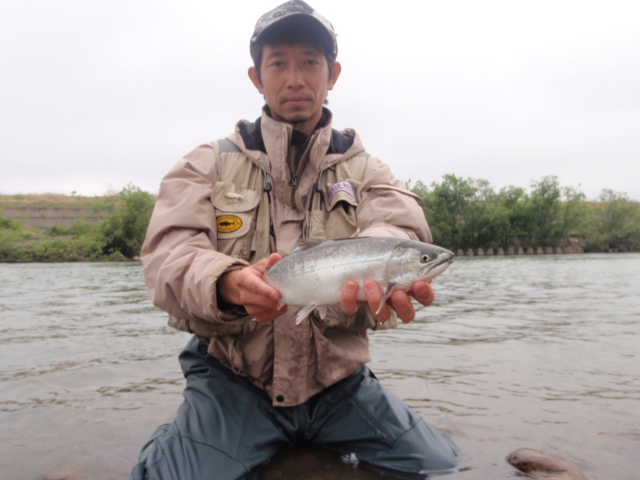 昨晩より車で待機していた大阪からお越しのSさん、30年近くサクラマスを狙う超ベテランの方でした。