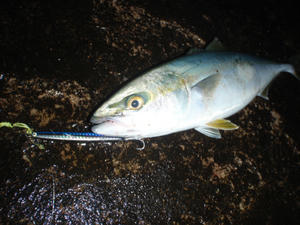 時間までやるが爆釣とはいかずサゴシ3本、ハマチ2本、とぱっとしませんでした。