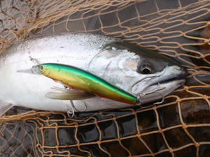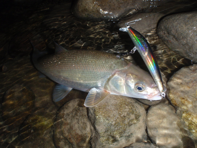 スローリトリーブや軽くジャークなどおりまぜながらゆっくりと釣り下る。