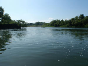 対岸の流れのヨレを狙う。水位があるときは反転流を起こす場所だが水位が下がれば流れは抜けていく。
