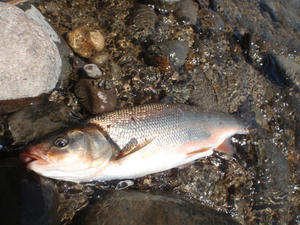 流速が緩むあたりで、ふと足元横に魚がいた!