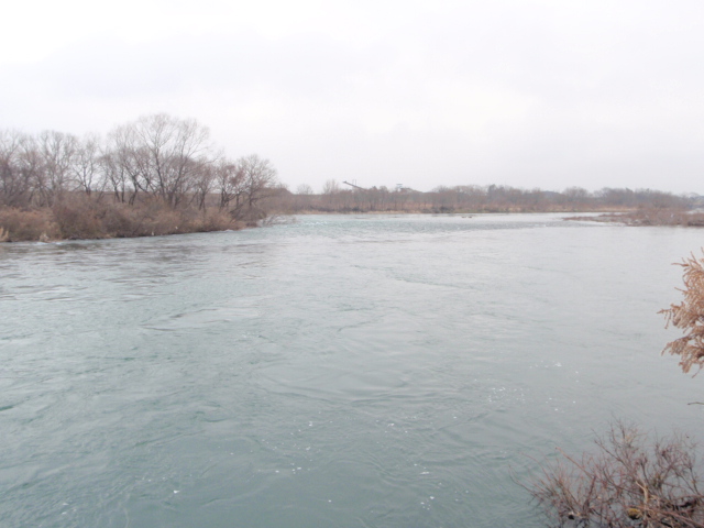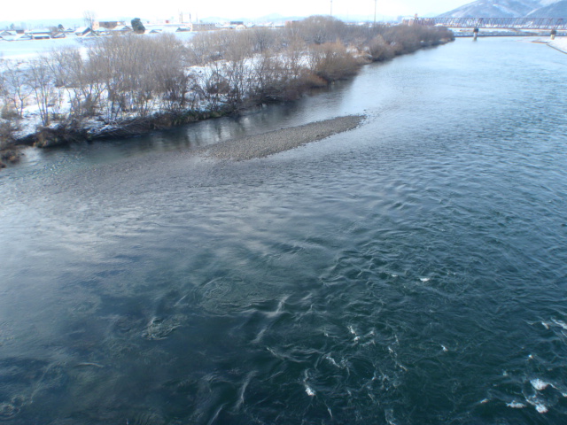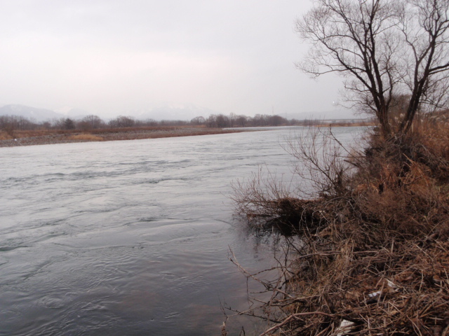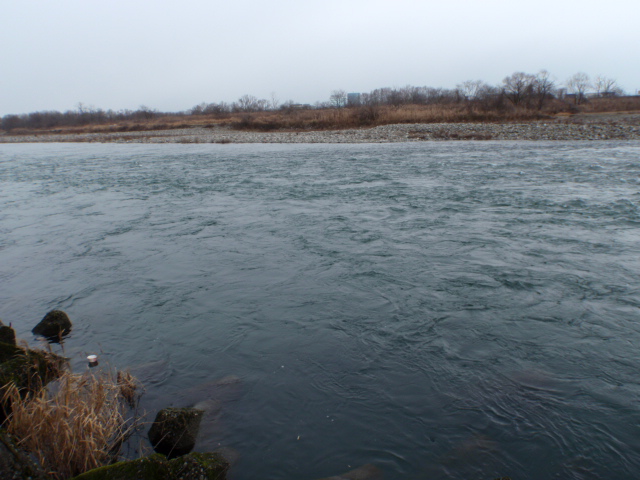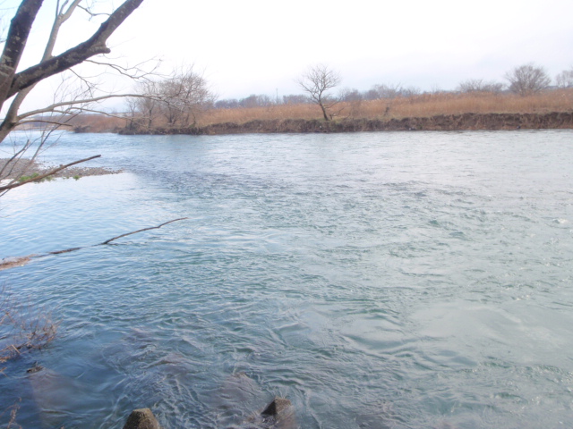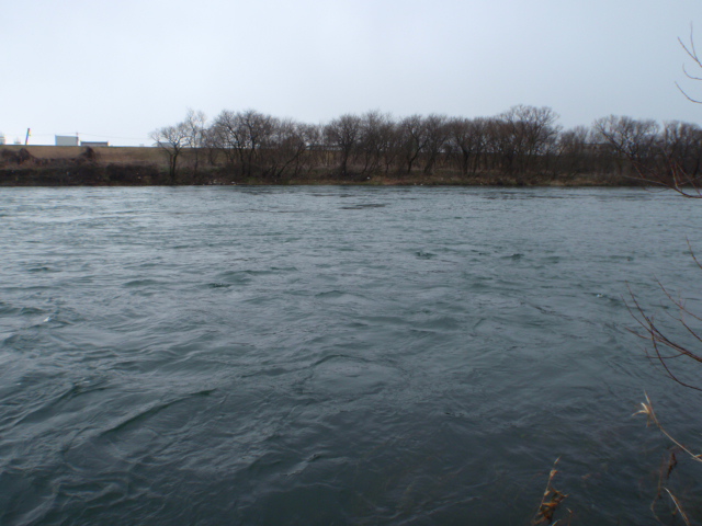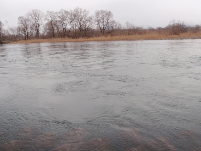 底質は砂で変化のない場所ですが一旦瀬に上がったサクラマスが舞い戻ってくる場所です。
